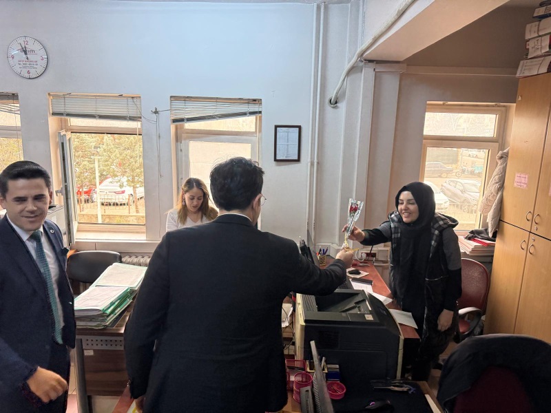 8 Mart Dünya Kadınlar Günü münasebetiyle düzenlenen etkinlikte, Cumhuriyet Başsavcımız Sayın Muhammed Şenol ÇELİKER ile Adalet Komisyonu Başkanımız Sayın Yunus Emre DUDAKLI; Adliyemizde görev yapan kadın Hâkim, Cumhuriyet Savcısı ve Adliye Personelini tek tek ziyaret ederek karanfil takdim etmek suretiyle bu özel günlerini kutladı.